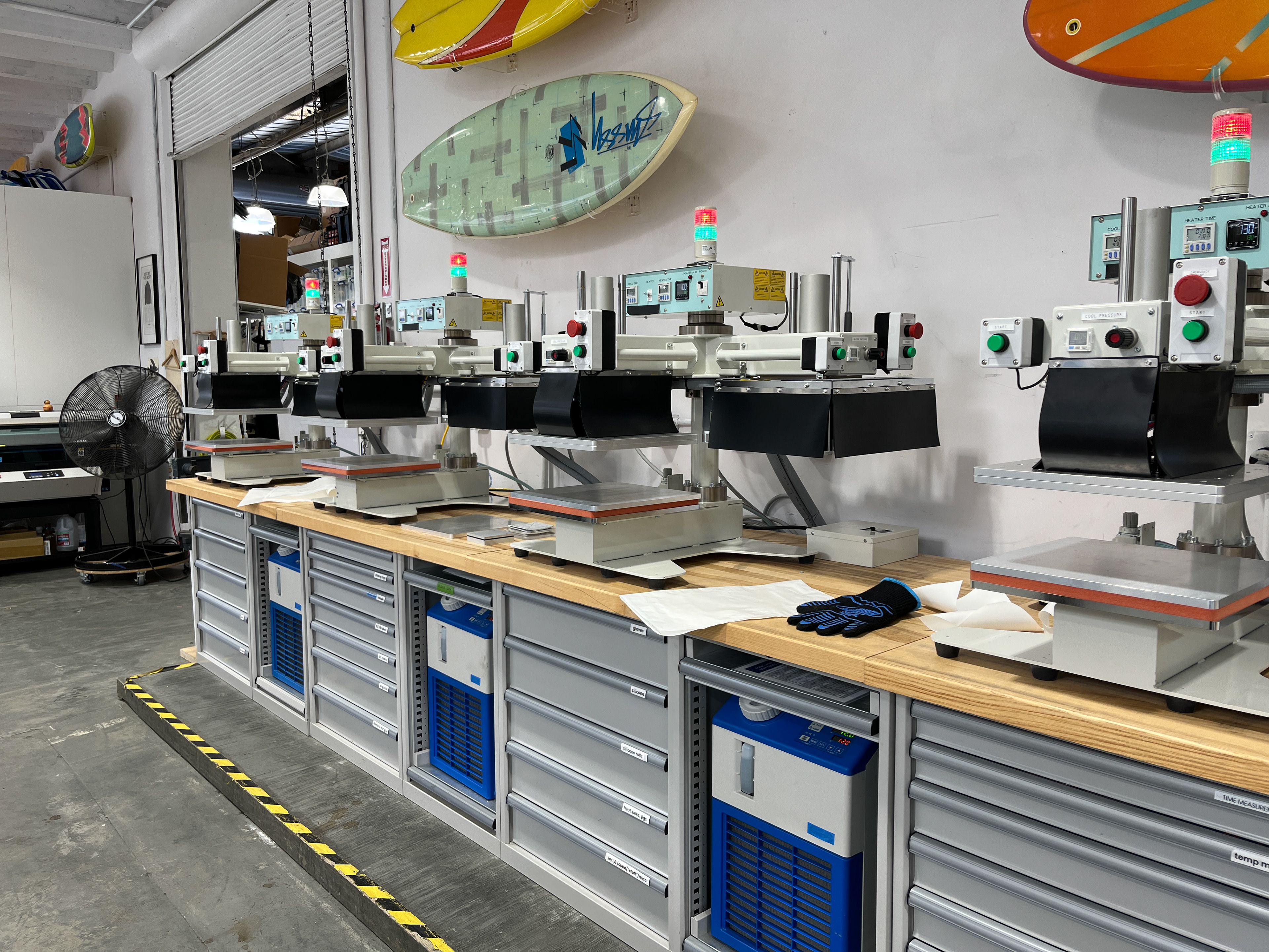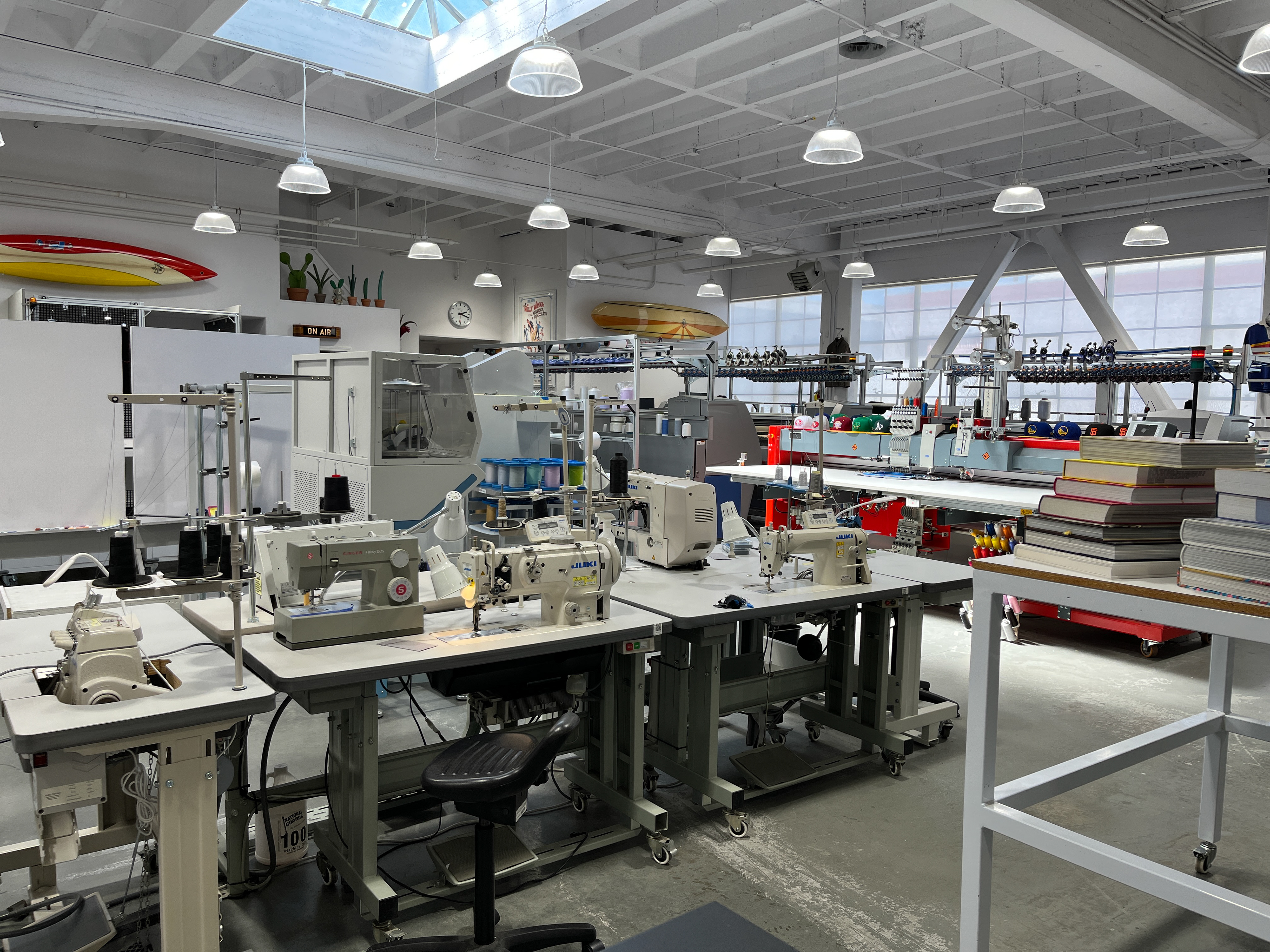 Our space has Stoll knitting machines, a Zund, laser cutters, heat presses, lamination and splitting capabilities as well as a high power microscope and testing equipment. We have the machines you see in factories - all under one roof.